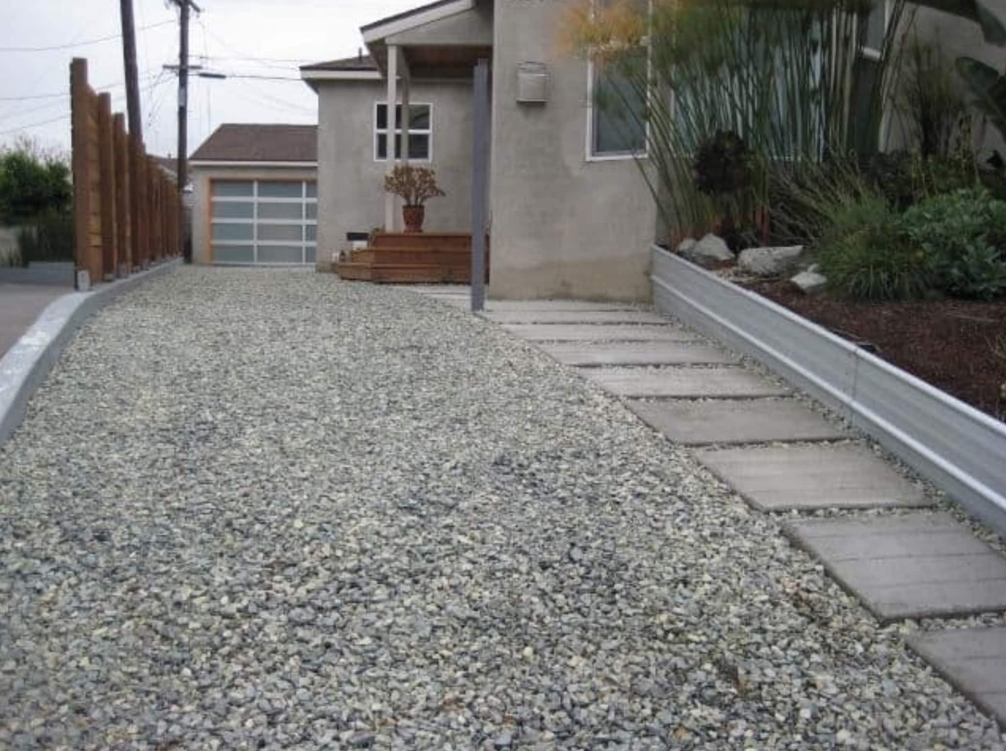 If you are looking for a low cost alternative for your driveway or patio area, we highly recommend using shingle or gravel. The installation of gravel including the material cost is significantly cheaper especially on a larger areas like open driveways.